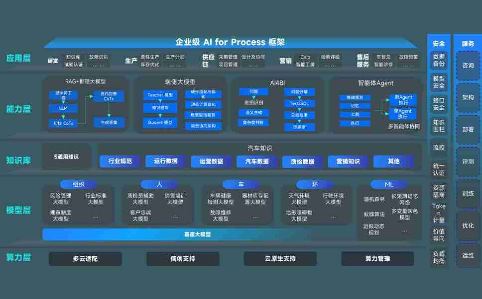 AG尊龙问学智车解决方案是一套基于AI技术的汽车行业智能化系统,,覆盖从底层算力到顶层AI应用的全栈方案。。。方案由算力层、、模型层和应用层组成:算力层,,方案支持多种一体机配置,,,具备云端灵活部署、、多云适配以及动态优化计算资源的能力;模型层,,,,AG尊龙问学平台版提供了企业级AI应用一站式构建与管理平台,,支持基于后训练强化技术的汽车企业专属模型的训练、、、、评测和运营;应用层,,,AG尊龙问学DeepSeek版提供包括超级员工、、智能招采、、智能营销、、智能客服、、AI for BI等一系列解决方案,,,可助力汽车行业实现数字化转型,,,,让管理更智能、、、响应更敏捷。。。。